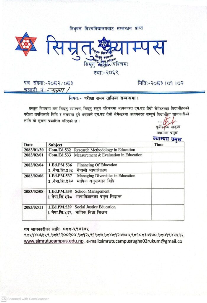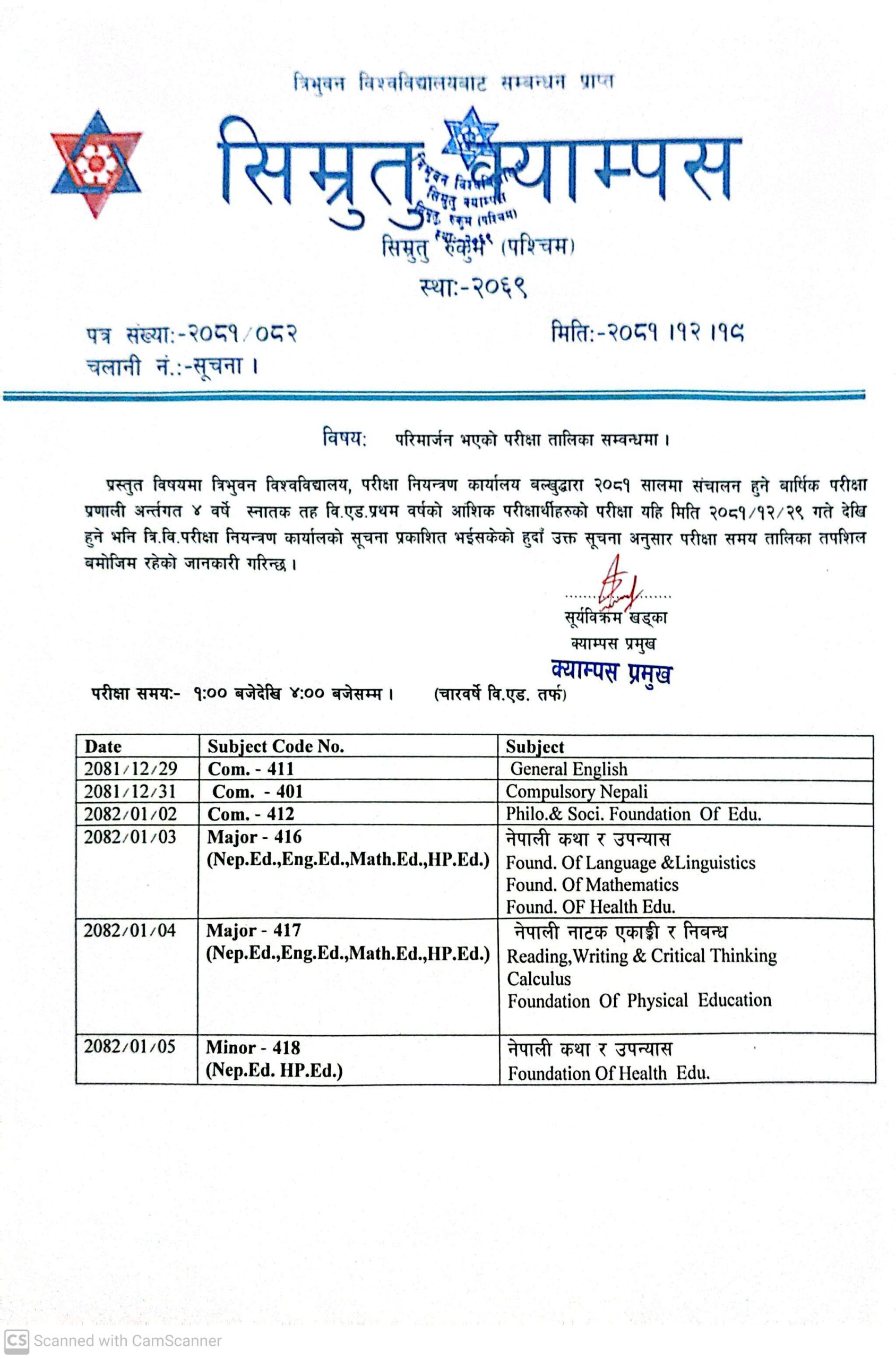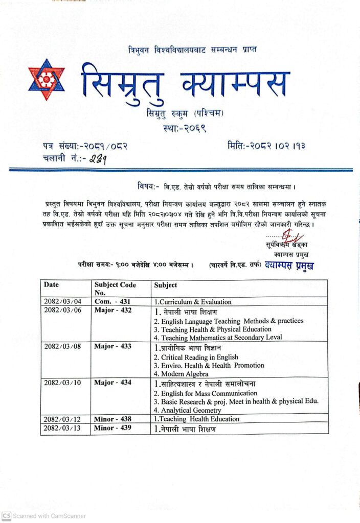 तेस्रो बर्षको परीक्षा तालिका