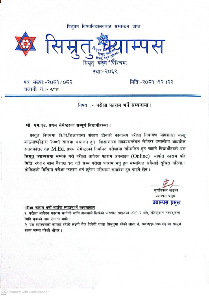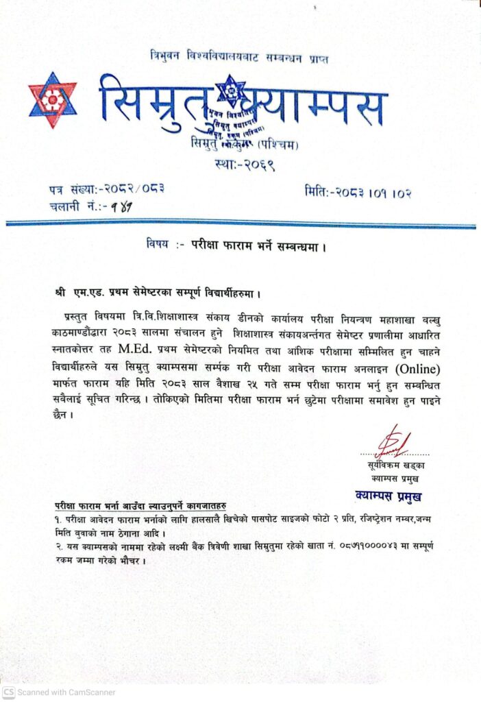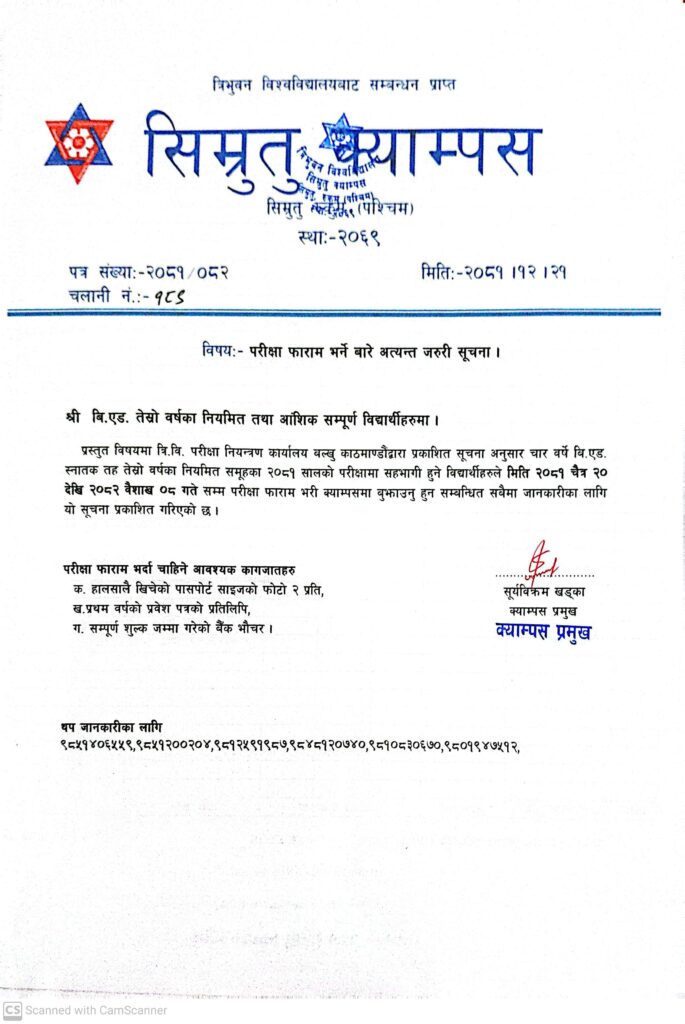 बि एड तेस्रो बर्ष नियमित तथा आंशिक परिक्षा फर्म भर्ने जरुरी सूचना।।
